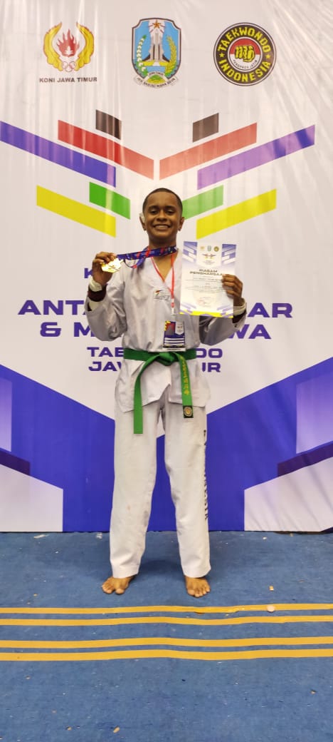 Selamat kepada Luis Nazario dalam perolehan Juara 1 Kejuaraan Taekwondo Kejurprov antar Pelajar dan Mahasiswa Jawa Timur yang diselenggarakan pada 22 September 2024 di GOR Ken Arok Malang